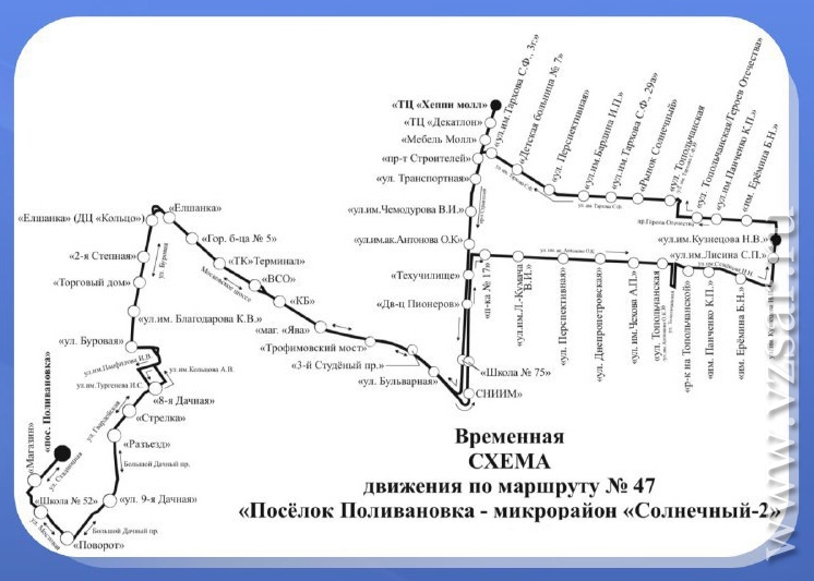 Речь идет о маршруте Nº 47 "пос. Поливановка - ТЦ "Хеппи Молл".