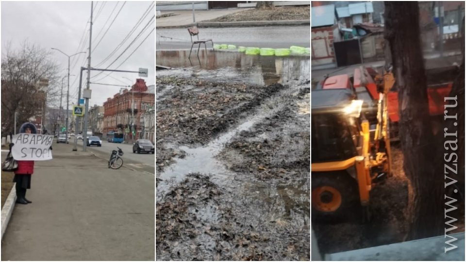 Пикет у правительства. "Саратовводоканал" приехал на место ЧП уже через три часа