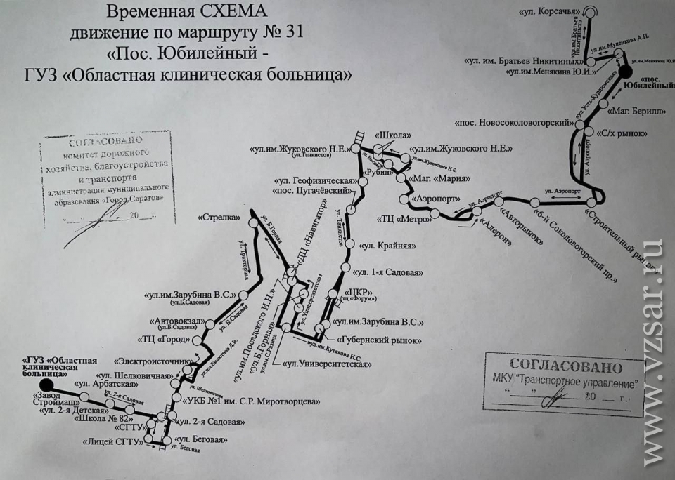 С сегодняшнего дня в центральной части Саратова вновь меняется схема движения автобусного маршрута № 31.