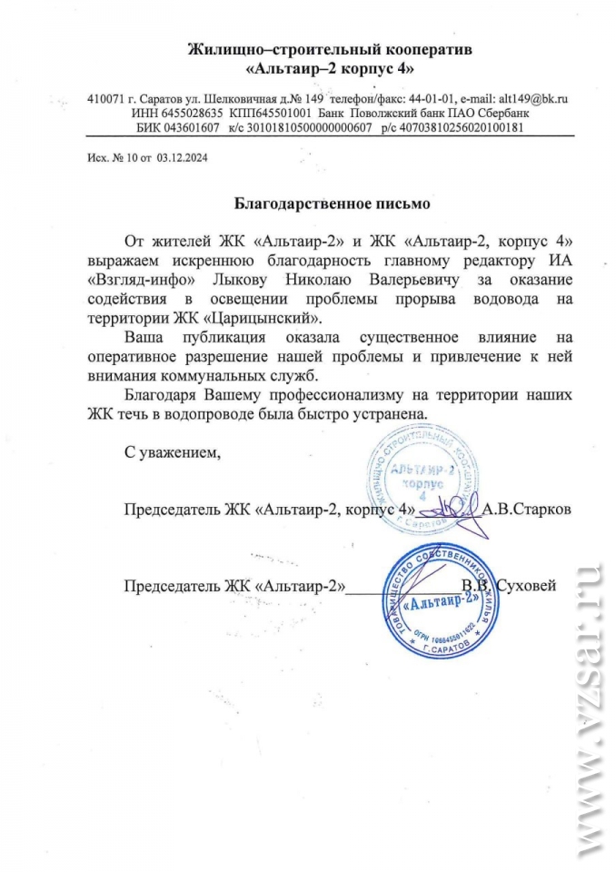 Вы можете прислать сообщения, фото и видео в наш телеграм-бот @Vz_feedbot