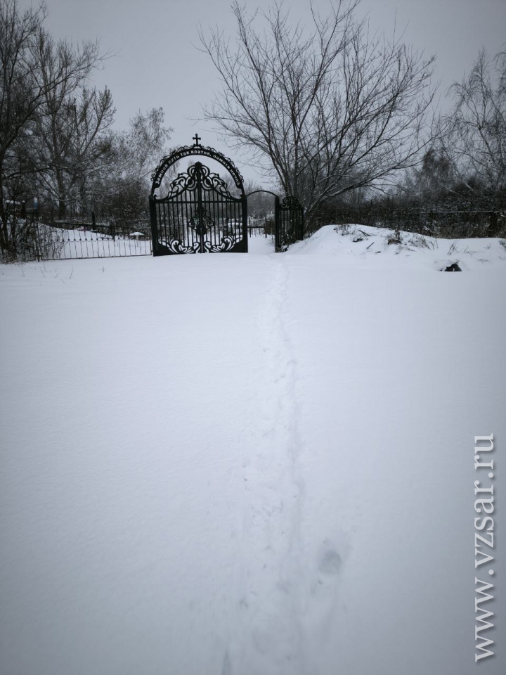 На фото, присланных в редакцию горожанами, видно, что дорогу к входу на погост действительно засыпало снегом, на котором не отметились ни лопата коммунальщика, ни отвал бульдозера.