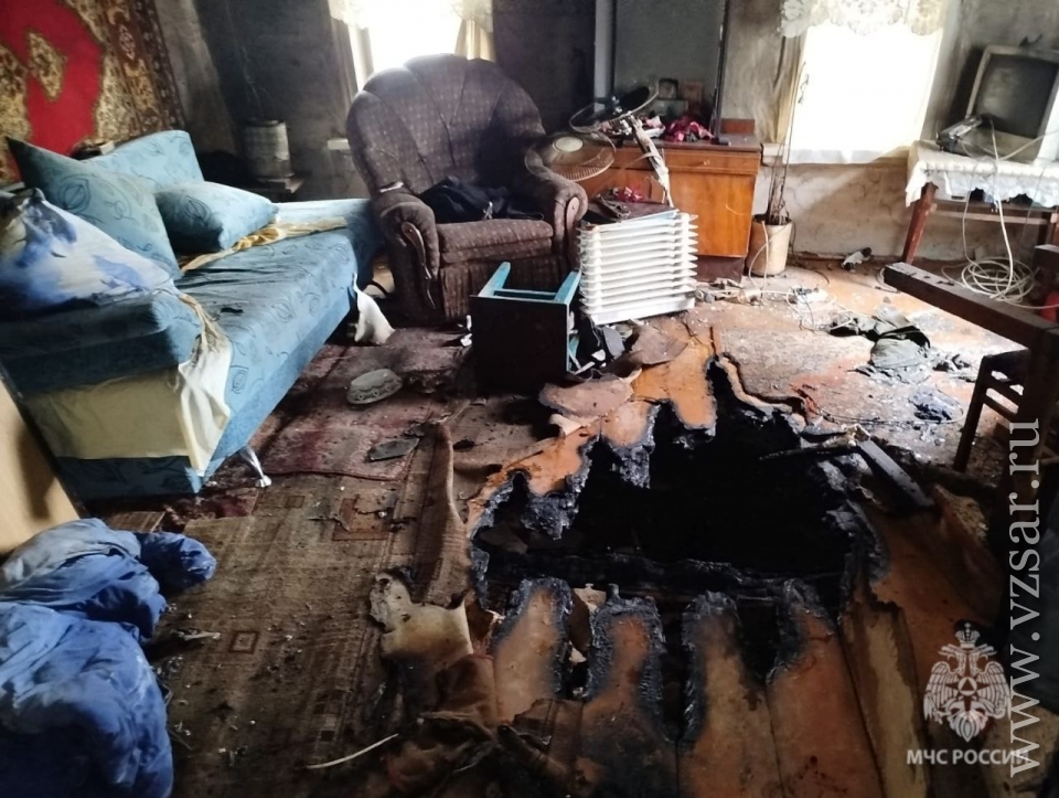 В 10.26 в МЧС поступило сообщение о пожаре в селе Ульянино. На улице Колхозная соседи заметили дым, поднимающийся из деревянного дома, разбили окно и забежали внутрь и увидели тлеющий в зале пол.