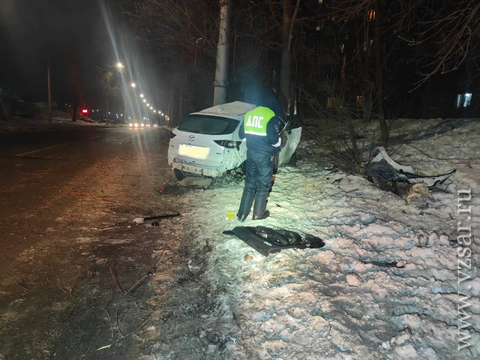 Вчера вечером в Ленинском районе Саратова автомобиль протаранил опору освещения. Об этом сообщает городская Госавтоинспекция.