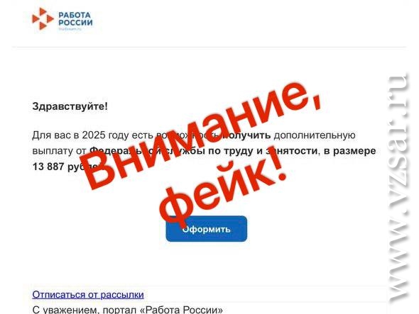 "Появились случаи рассылки писем, в которых мошенники предлагают получить выплату от якобы Федеральной службы по труду и занятости. Адресатов уведомляют о том, что им положена выплата в размере 13887 рублей (размер может быть любой) и предлагают оформить карту "Мир" для ее получения, перейдя по ссылке на мошеннические ресурсы", - говорится в официальном релизе.