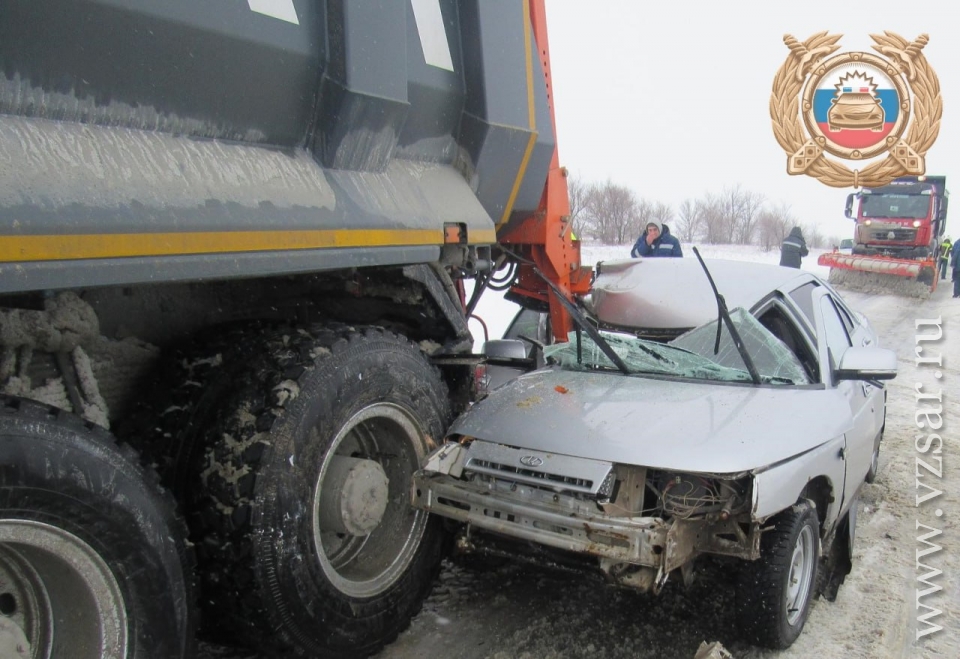 По предварительным данным, в 8.10 на 503-м км автодороги Р-208 "Тамбов - Пенза" - Саратов - Пристанное - Ершов - Озинки - граница с Казахстаном столкнулись "десятка" под управлением 26-летнего парня и самосвал Sitrak с 59-летним гражданином за рулем.