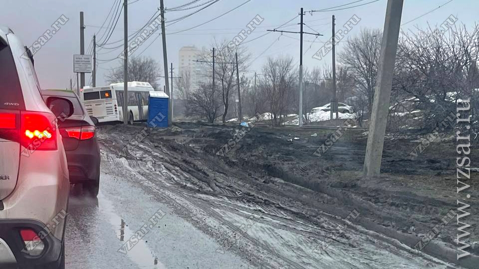 В Саратове на 8-Дачной, на конечной остановке компенсационных маршрутов №№ 9А и 9Б, сегодня утром в грязи застрял автобус.