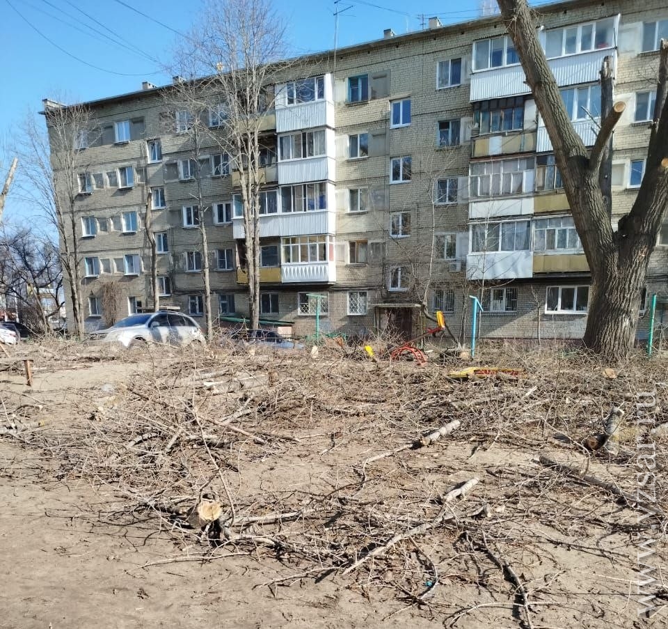 Жители Ленинского района Саратова возмущены тем, что после опиловки дерева с детской площадки не убирают ветки.