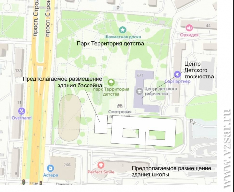 Школа на 1100 мест с бассейном и стадионом будет построена именно в парке "Территория детства" Ленинского района Саратова.
