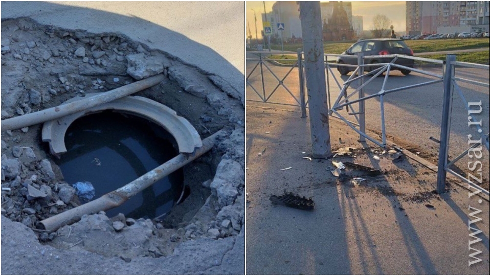 В Волжском районе Саратова на проезжей части не могут отремонтировать открытый колодец.