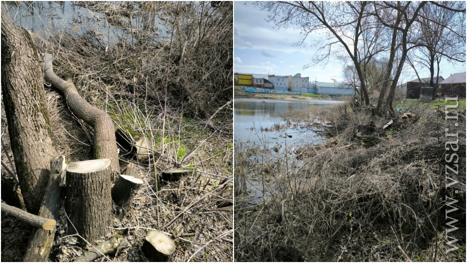 Жители Калининска Саратовской области возмущены оставленными на берегу реки частями спиленных деревьев.