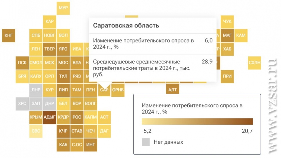 По итогам 2024 года позиции Саратовской области в рейтинге по динамике потребительского спроса сильно ослабли. Такие данные публикует сегодня РИА Новости.