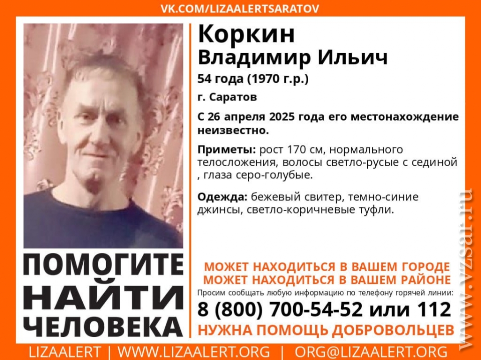 Всех, кто располагает какой-либо информацией о Владимире Ильиче, просят сообщить об этом по телефонам: 8-800-700-54-52 или 112.