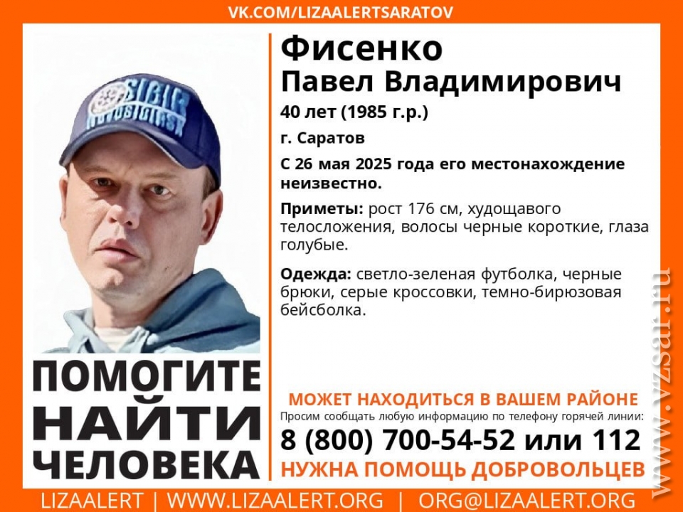 В Саратове пропал без вести 40-летний Павел Фисенко. Об этом сообщает поисковый отряд "Лиза Алерт Саратов".