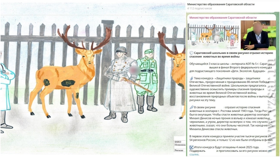 "Саратовский школьник в своем рисунке отразил историю спасения животных во время войны.