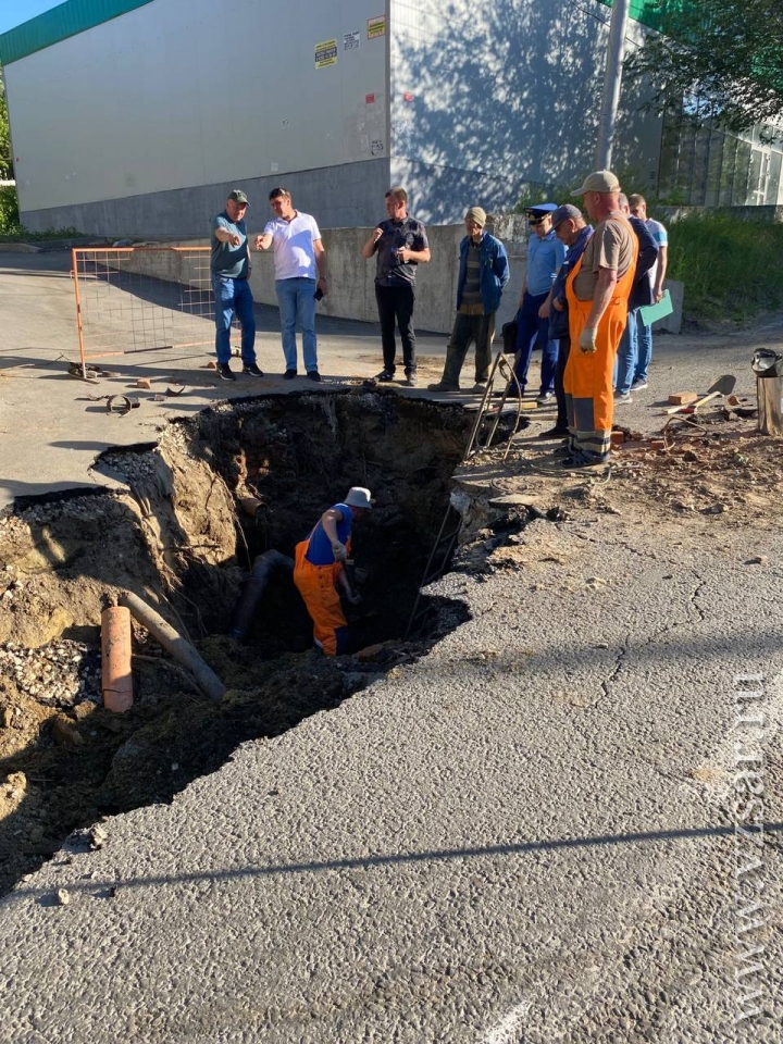 "Совместно с представителями ресурсоснабжающей организации определены дальнейшие действия по устранению причины утечки и самого провала", - говорится в публикации.