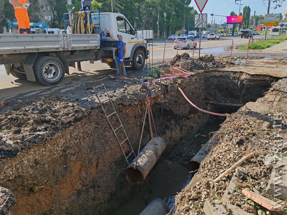 В настоящее время изношенный участок водопровода демонтирован (на снимке данный участок). Ведутся подготовительные работы к монтажу нового. Завершить ремонтные мероприятия планируется до 20.00 сегодняшнего дня.