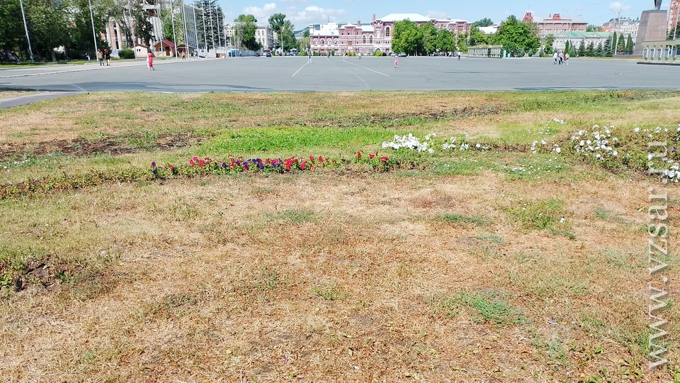 Газоны на Театральной площади в Саратове заросли сорняками