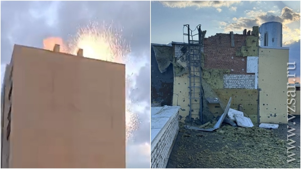 Жители Энгельса Саратовской области стали свидетелями попадания БПЛА в многоэтажный дом. Видео с места происшествия в редакцию ИА "Взгляд-инфо" прислали очевидцы.