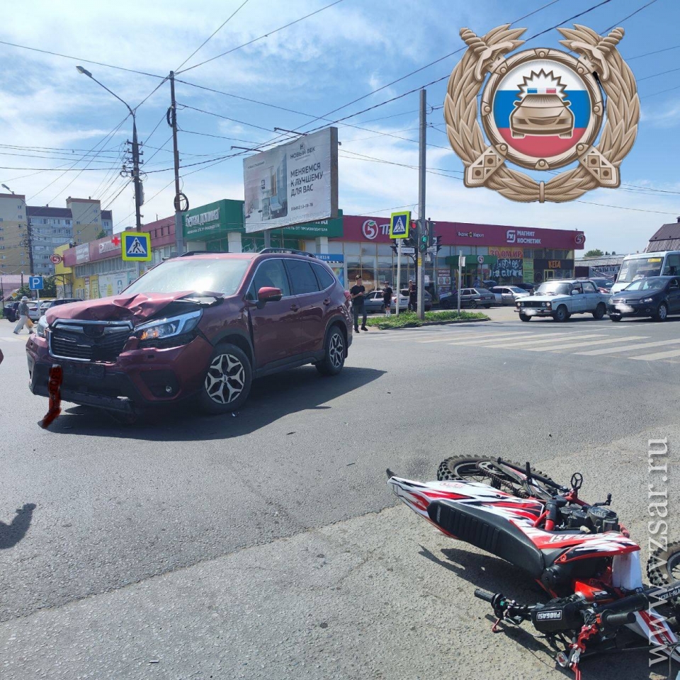 По предварительным данным, в 10.58 у дома № 91 по улице Студенческая столкнулись автомобиль Subaru Forester под управлением 63-летнего водителя и питбайк с 17-летним юношей за рулем.