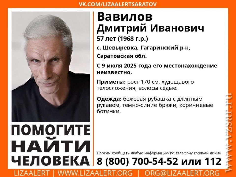 Как сообщает поисковый отряд "Лиза Алерт Саратов", мужчина ушел из дома в селе Шевыревка 9 июля, и с тех пор его местонахождение неизвестно.