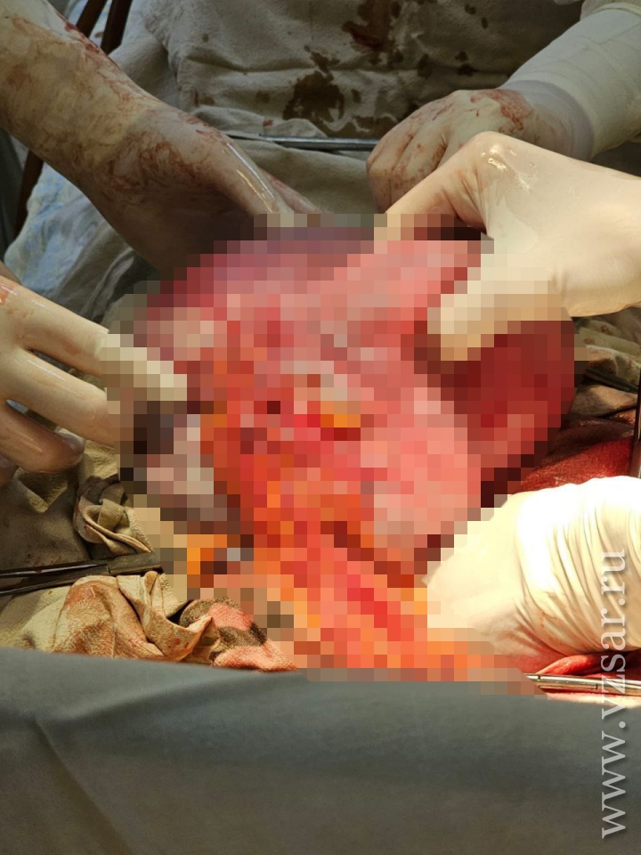 "При удалении опухоли первым этапом было эвакуировано 12 литров жидкого содержимого этого новообразования, и только затем появилась возможность производить манипуляции по его удалению. Общий вес опухоли составил 17 кг. Было обнаружено массивное атипическое кровоснабжение опухоли из забрюшинного пространства, для лигирования сосудов и ревизии забрюшинного пространства привлекались хирурги первого хирургического отделения", - сообщается в тг-канале ГКБ №1.
