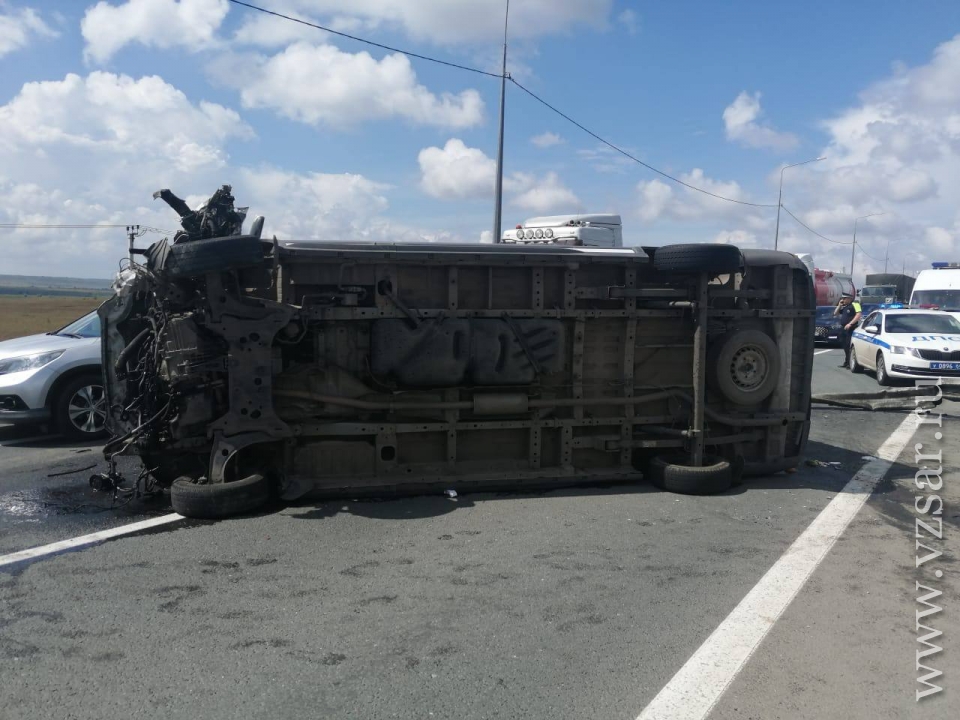 По предварительным данным, в 10.20 на 300 км автодороги Сызрань - Саратов - Волгоград (вблизи села Сторожевка) 61-летний водитель микроавтобуса Ford Transit не справился с управлением и автомобиль опрокинулся.