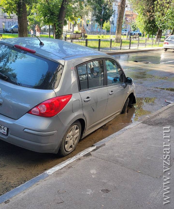 Сегодня в Кировском районе Саратова из-за коммунальной аварии автомобиль провалился в яму. Об этом ИА "Взгляд-инфо" рассказали очевидцы.