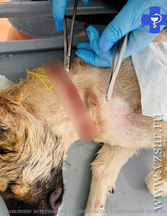 В Самойловском районе Саратовской области ветеринары пришли на помощь щенку, пострадавшему из-за слишком жесткого ошейника. Об этом сообщает региональное правление ветеринарии в соцсети VK.