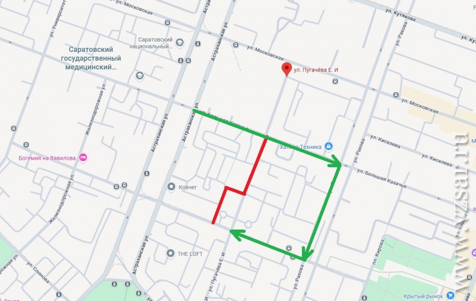 Компания приступает к ремонтным работам на теплосети на улице Пугачева. В связи с этим временно закрывается движение автотранспорта на участке между улицами Большая Казачья и Вавилова.