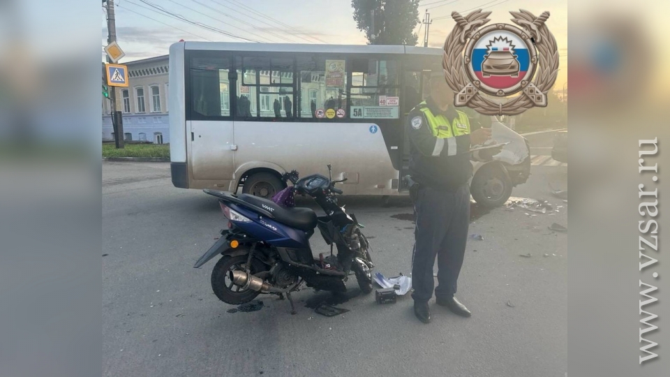 По предварительным данным, в 19.20 напротив дома № 73 по улице Коммунистическая столкнулись "ГАЗ" маршрута № 5А с 65-летним водителем за рулем и скутер VMC под управлением 16-летнего парня.