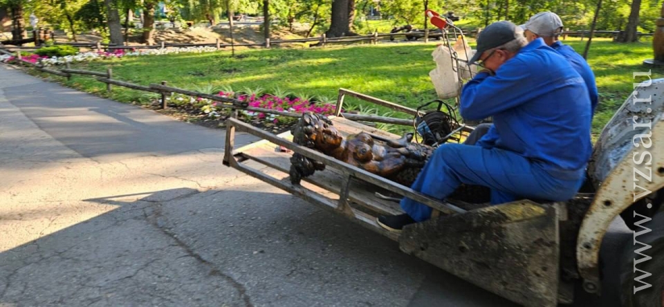 Сегодня в Саратове после трагической гибели маленькой девочки в горпарке начали демонтировать деревянные скульптуры. Об этом в своем тг-канале сообщает МБУ "Садово-парковое".