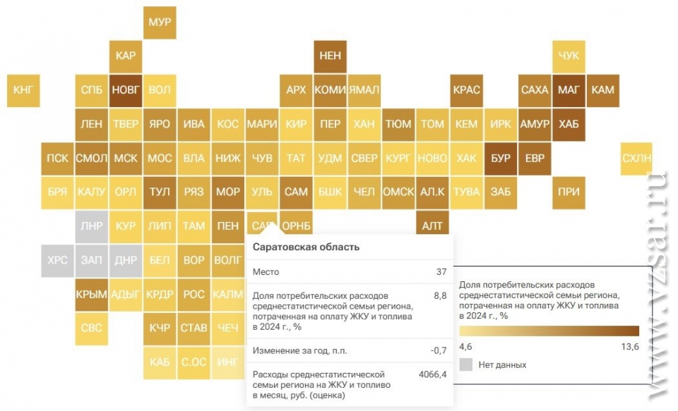 За год доля расходов на ЖКУ в структуре потребительских трат саратовских семей немного снизилась. Таковы данные очередного исследования РИА Новости, составившего рейтинг регионов по итогам 2024 года.