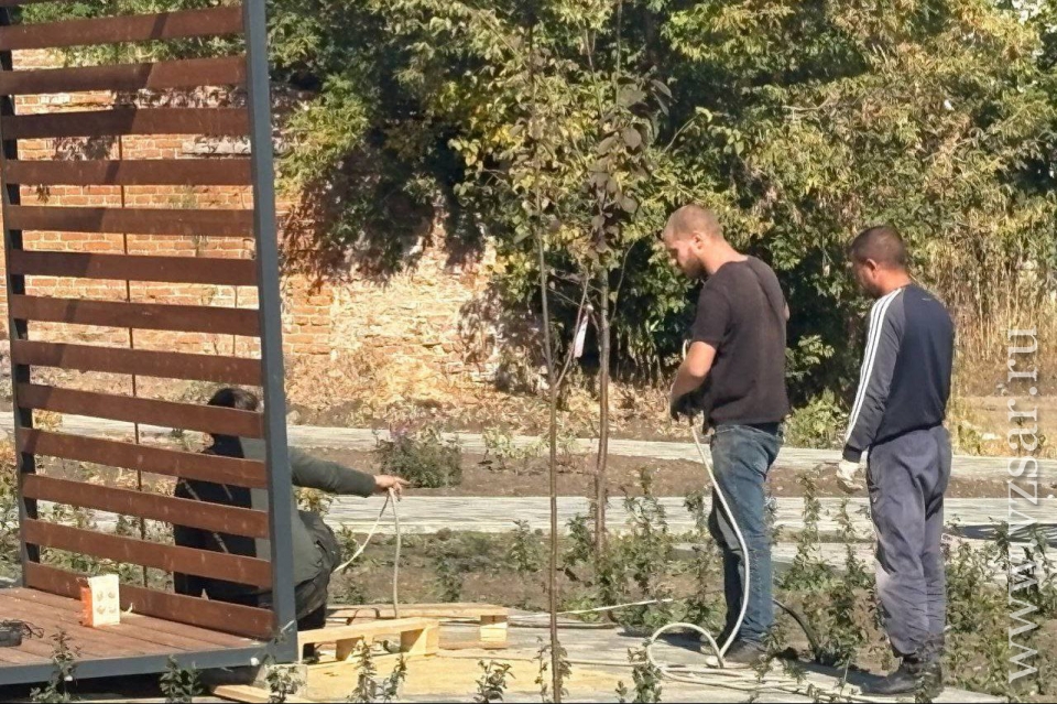 Сейчас в сквере на Московской и Некрасова начали подключать электричество. Здесь будут светящиеся качели, и фигуры также получат подсветку.