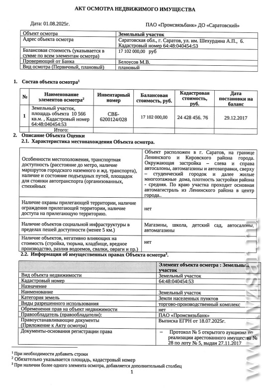 Банк ПСБ объявил аукцион о продаже земельного участка на улице Шехурдина в Саратове.