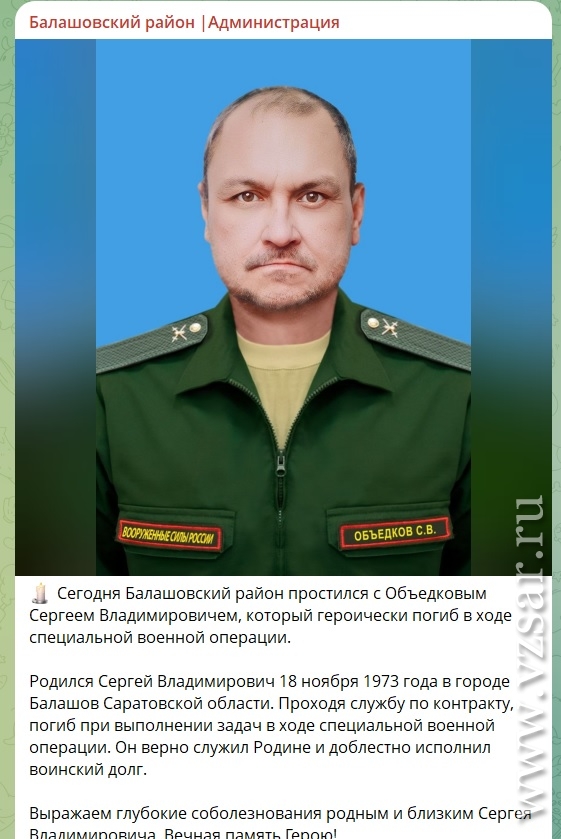 Администрация Балашовского района рассказала, что сегодня прошло прощание с погибшим Сергеем Объедковым.