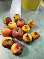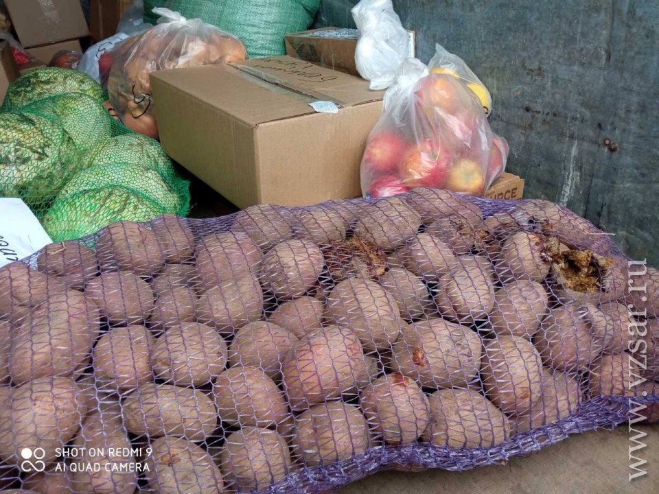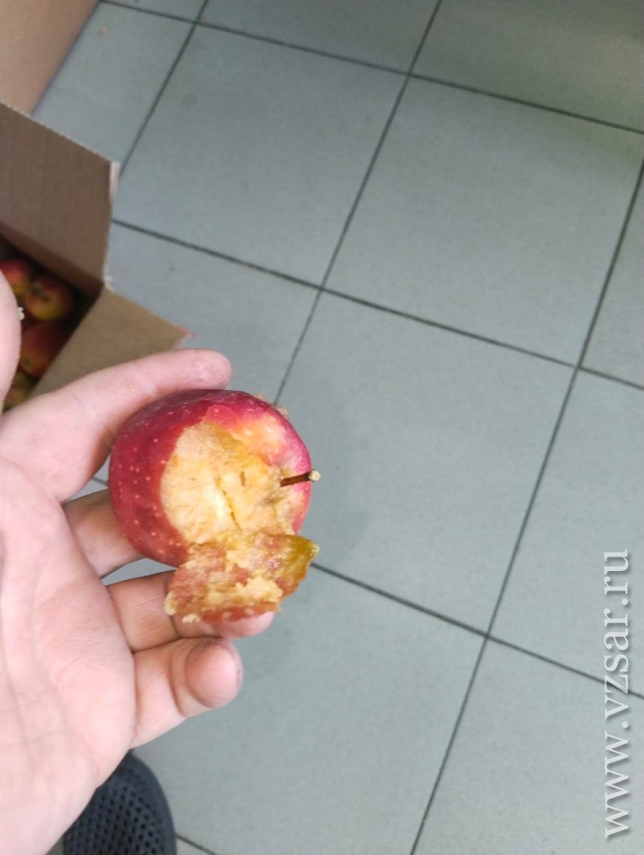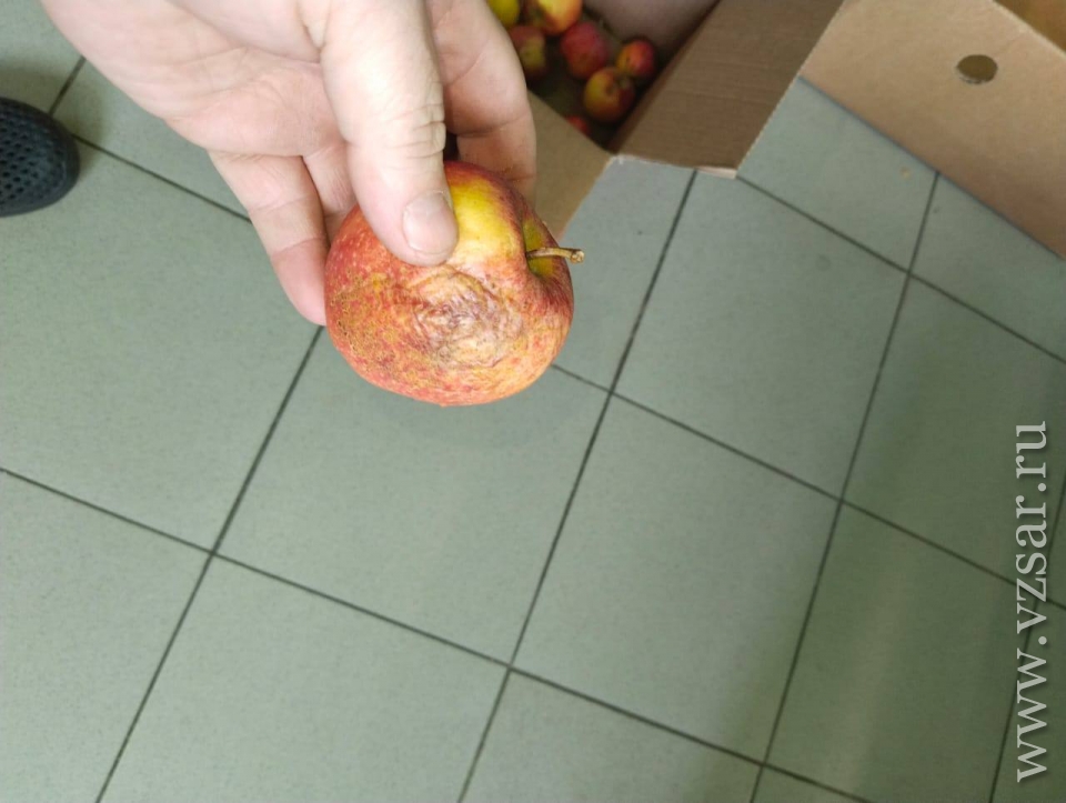 На представленных сельчанами фотографиях видны гнилые овощи (картофель, капуста), яблоки, лимоны, а также битое печенье, часть которого во время транспортировки превратилась в крошку.