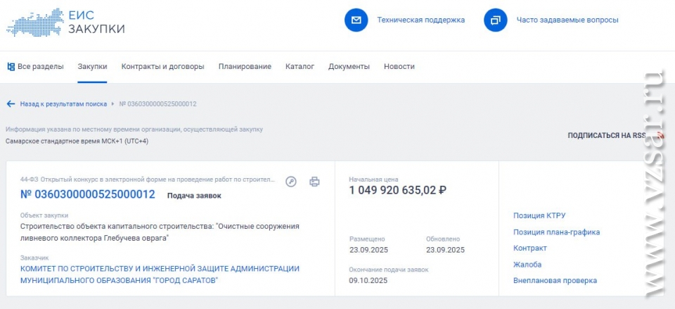 Подрядчику готовы заплатить 1 млрд 50 млн рублей из бюджета Саратова; об авансе в документации не говорится.