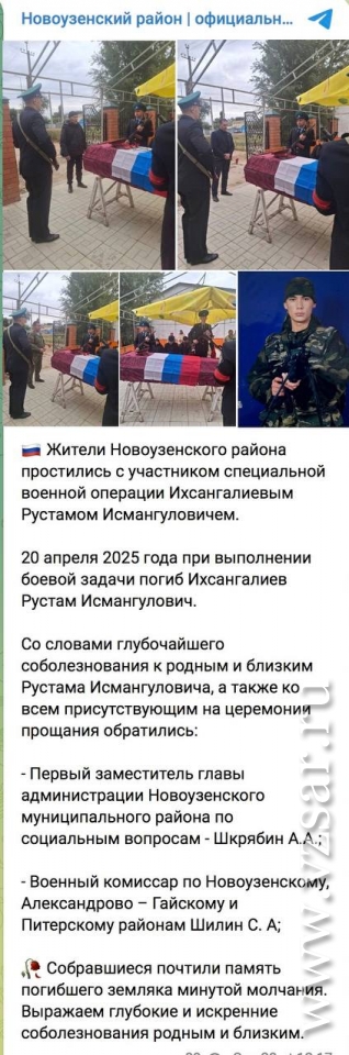 Жители Новоузенского района простились с Рустамом Ихсангалиевым, который погиб 20 апреля, рассказали в райадминистрации.