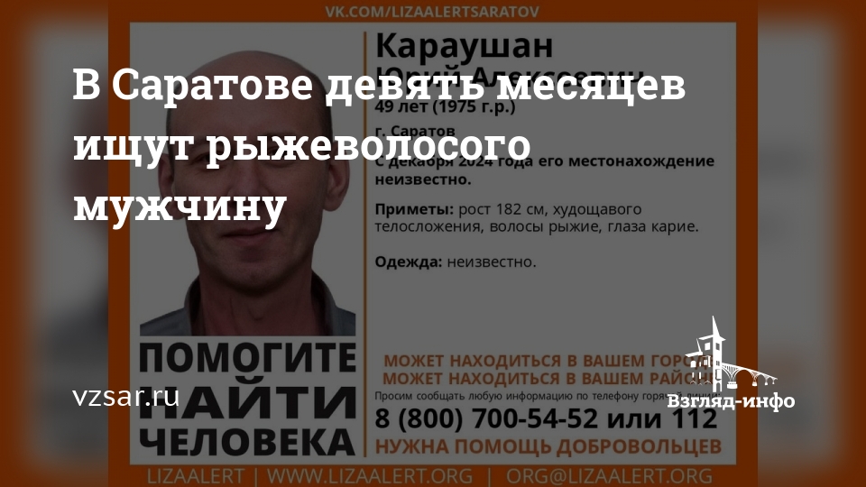 Приметы: рост 182 см, худощавого телосложения, волосы рыжие, глаза карие. Во что был одет пропавший – неизвестно.