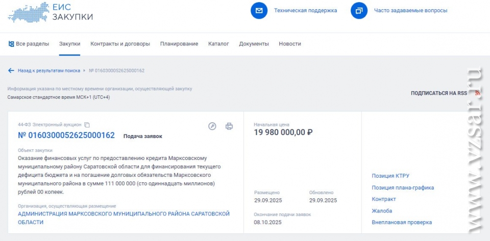 Администрация Марксовского района объявила аукцион на оказание услуг по предоставлению кредита. Соответствующая информация размещена сегодня на сайте госзакупок.