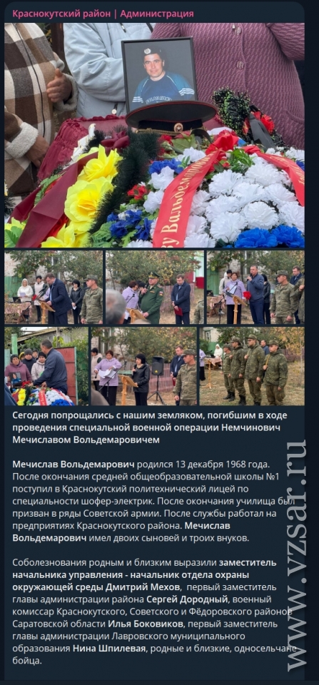 О погибшем Мечиславе Немчиновиче рассказала администрация Краснокутского района.