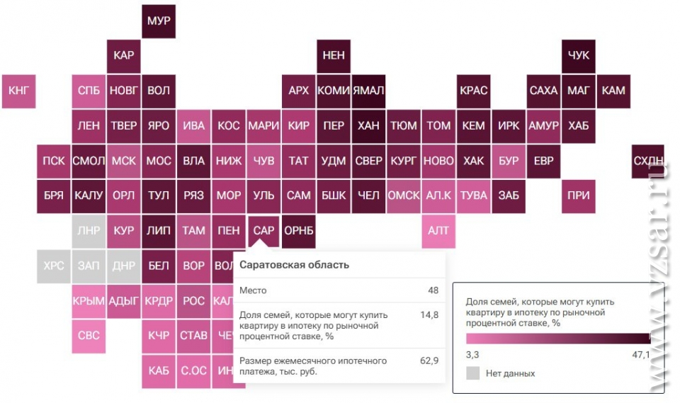 Для семей Саратовской области жилищное кредитование стало более доступным: год назад его могли себе позволить 12,4%, а сейчас - 14,8%. Несмотря на это, наш регион ухудшил позиции в рейтинге, переместившись с 46-го места на 48-е.