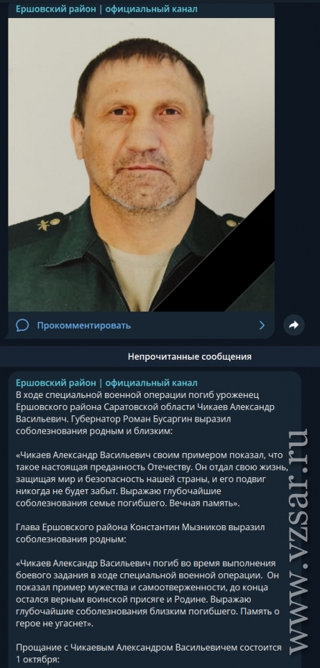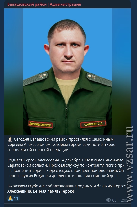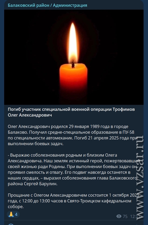 Администрация Балаковского района сообщает о гибели Сергея Петренко и Олега Трофимова.