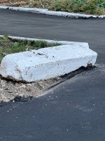 Обращаю внимание на качество работ: асфальт уложен за два дня, очень тонким слоем. При этом старые бордюры остались на месте - они кривые, частично вывернуты и разрушены.