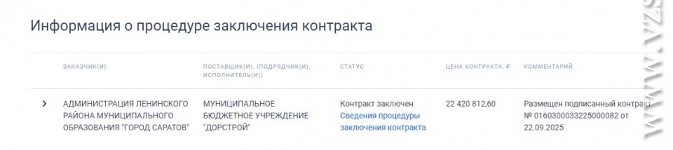 Контракт на сумму 22 млн 421 тысяч рублей заключен 22 сентября с контролируемым той же администрацией МБУ "Дорстрой" (директор Дмитрий Злобнов).