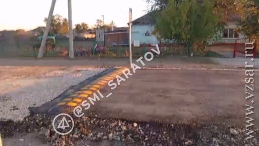 Жители саратовского села удивлены укладкой десяти метров асфальта возле детсада