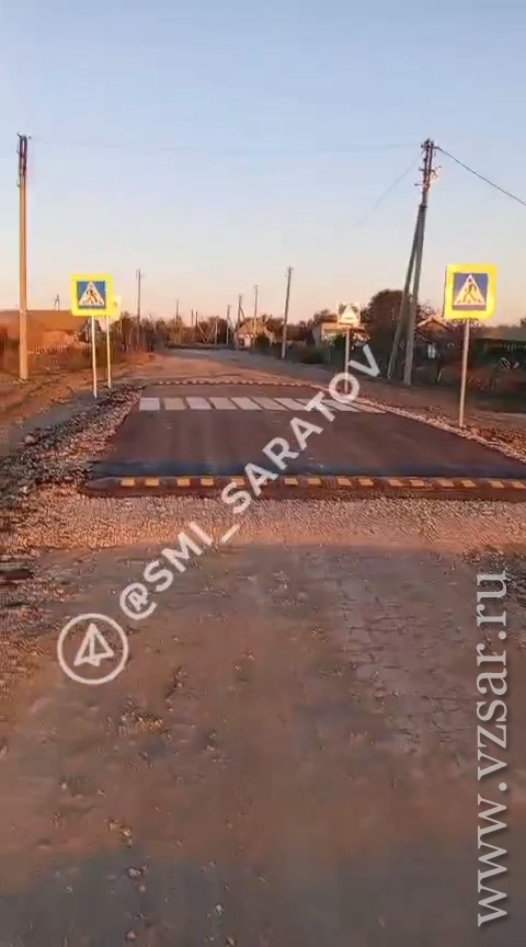 По словам автора видео, в селе Козловка возле детского сада на проезжей части положили 10 метров асфальта, сделали пешеходный переход, два лежачих полицейских и поставили соответствующие знаки.