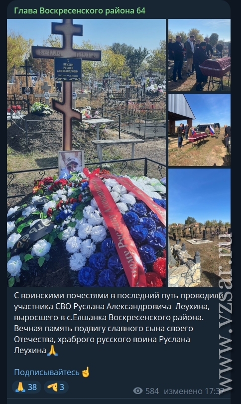Глава Воскресенского района Денис Павлов рассказал о прошедшем вчера прощании с погибшим уроженцем села Елшанка Русланом Леухиным.