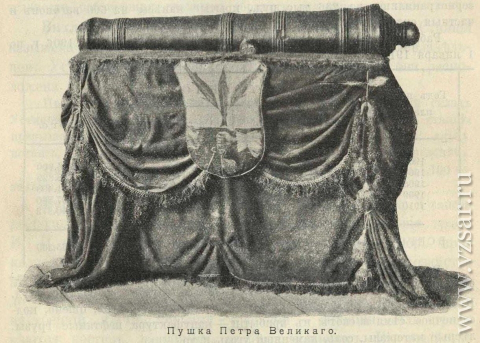 Остался рисунок из путеводителя по Петровску, где можно посмотреть, как выглядела пушка Петра Великого. В то время она находилась в здании присутствия по воинской повинности (аналог современного военкомата). Ее постамент был богато драпирован и украшен гербом Петровска. Реликвию осматривал будущий император Александр II, когда посетил наш город в 1837 году.
