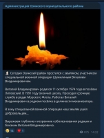 Администрация Озинского района сообщает о гибели Виталия Шумилина.